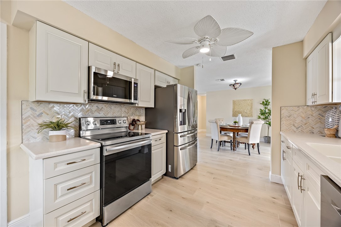 Beautifully renovated 2-bedroom,2-bath canalfront home offering modern comfort and relaxed Florida living. Freshly painted throughout, with new wood like tile plank flooring, new kitchen cabinets, solid surface countertops and remodeled bathrooms. Enjoy peace of mind with a fully fenced backyard- perfect for pets and play. Shed in back for additional storage. The property features a one car garage plus a carport for added convenience, all set waterfront, along a canal, for outdoor enjoyment and beautiful views. Metal roof 2019.