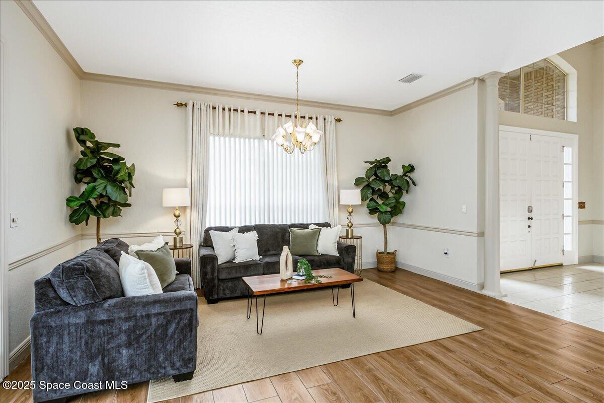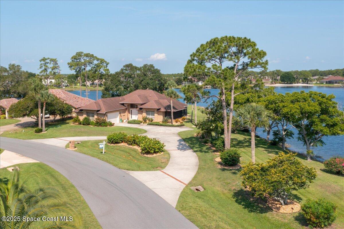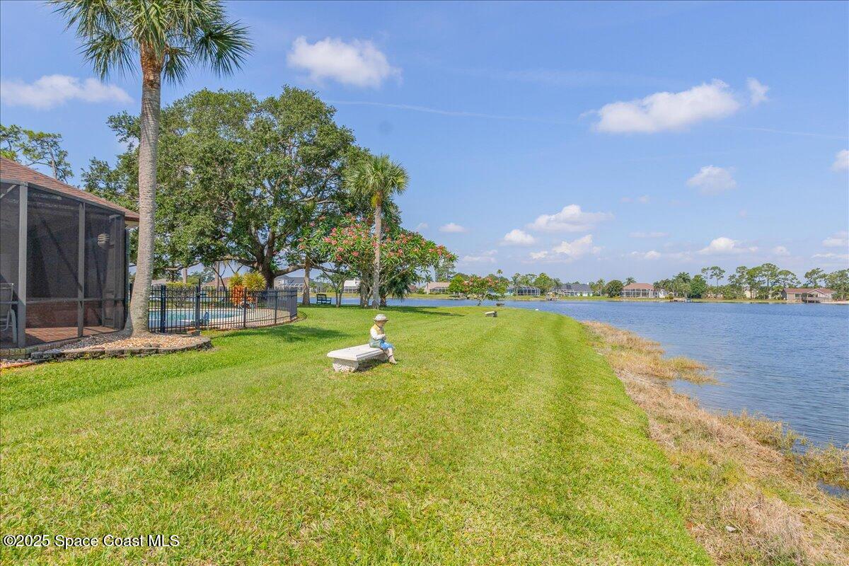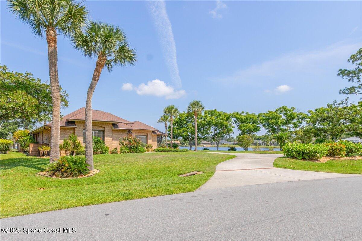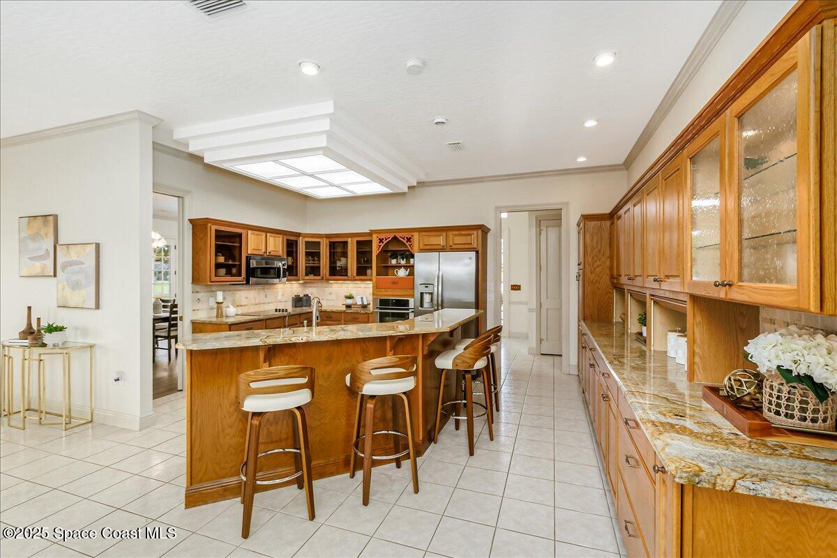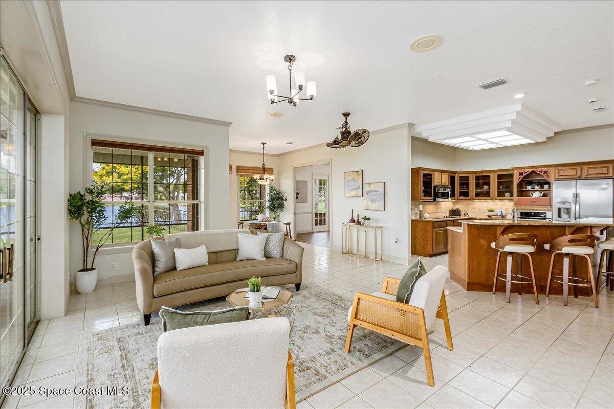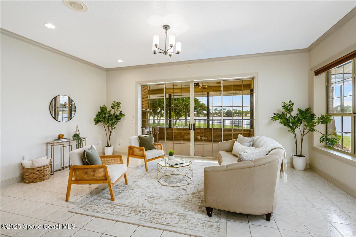 Exceptional custom-built pool home by East Coast Craftsman in prestigious Carriage Gate! This 3 bed, 2 full + 2 half bath residence offers 2,563 sq. ft. of living space on a .54-acre lakefront lot with panoramic views. Solid concrete block construction with a full brick exterior ensures timeless durability & curb appeal. The soaring 16' foyer & 10' ceilings with 8' doors create a grand, open feel. The gourmet kitchen features quartz & granite counters, new appliances, abundant storage & views of the pool & lake. The spacious primary suite includes double sliders to the patio, a walk-in closet, & a spa bath with dual vanities, walk-in shower, and garden tub. Executive finishes include crown molding, tiled floors, and a Jack-n-Jill bath for guest rooms. Outdoor living shines with a resurfaced pool (2016), summer kitchen, half pool bath, and an extended brick-paver patio. A circular drive & central vac complete this extraordinary property in an A-rated school district near shopping