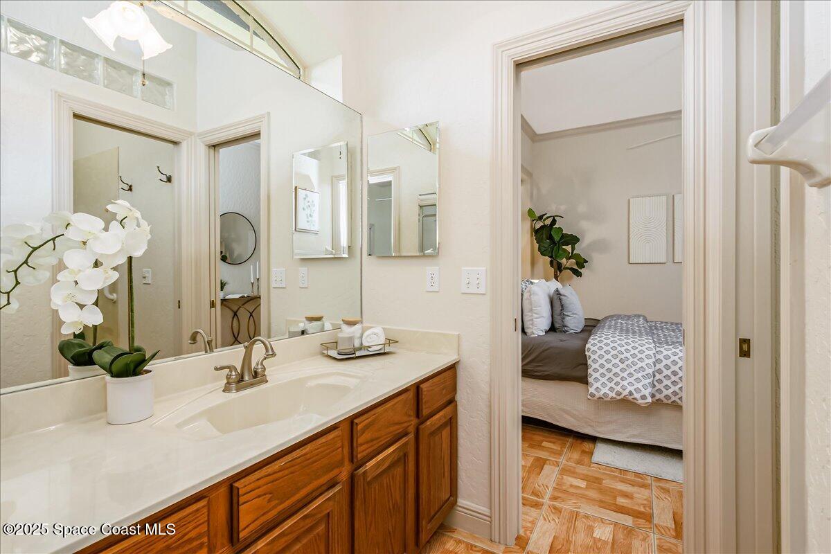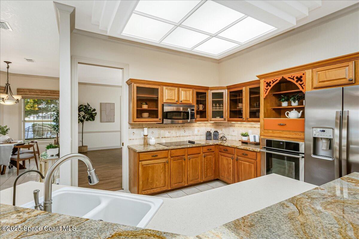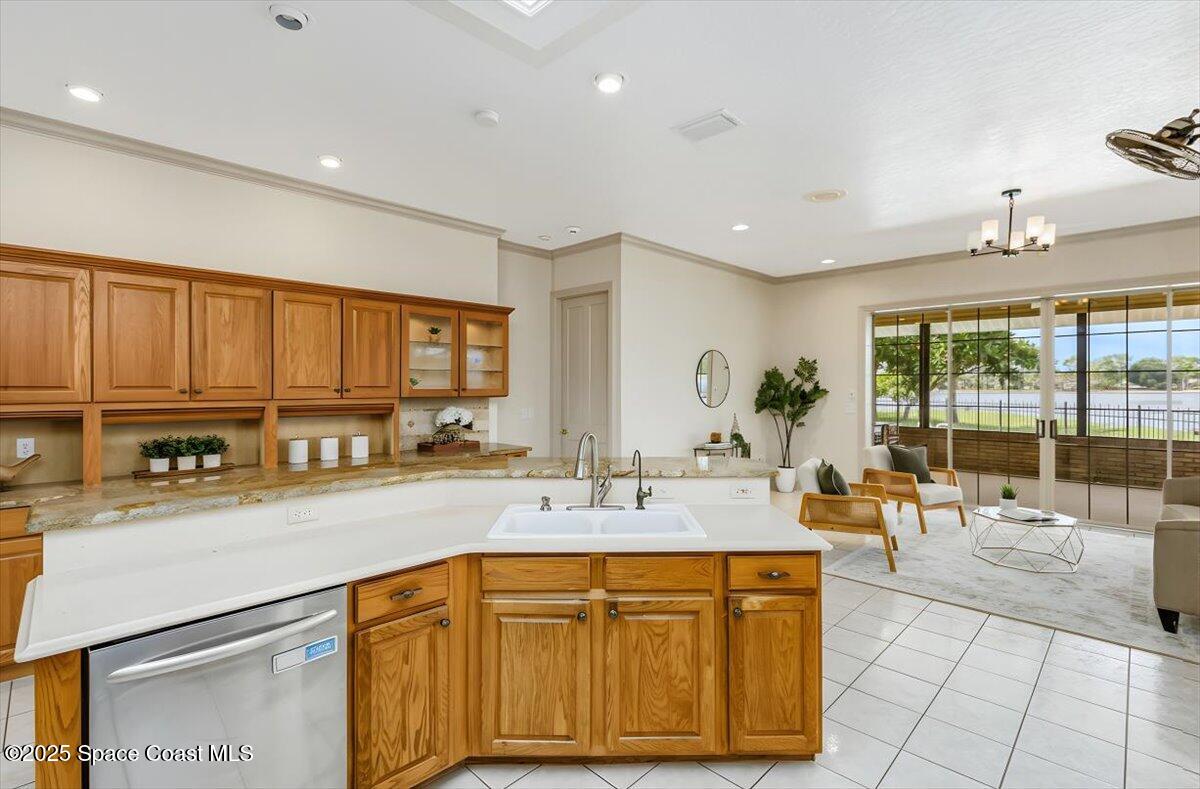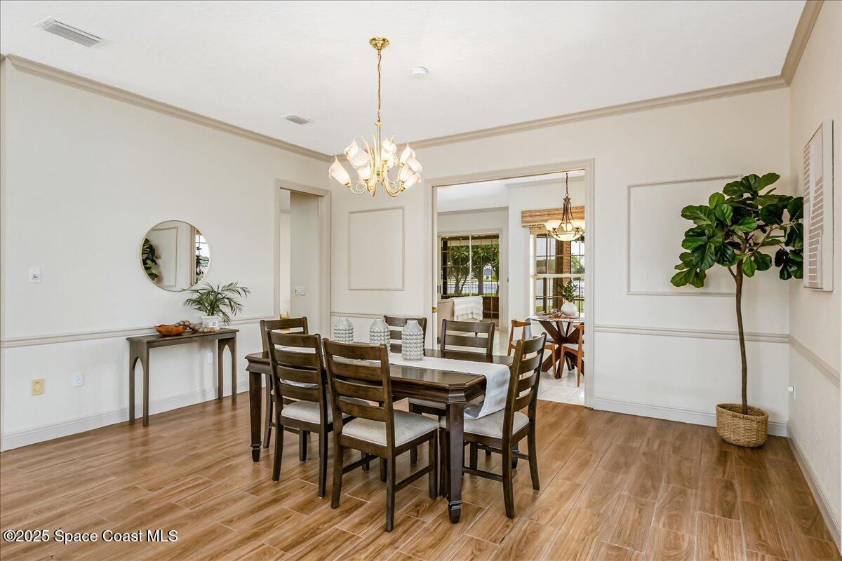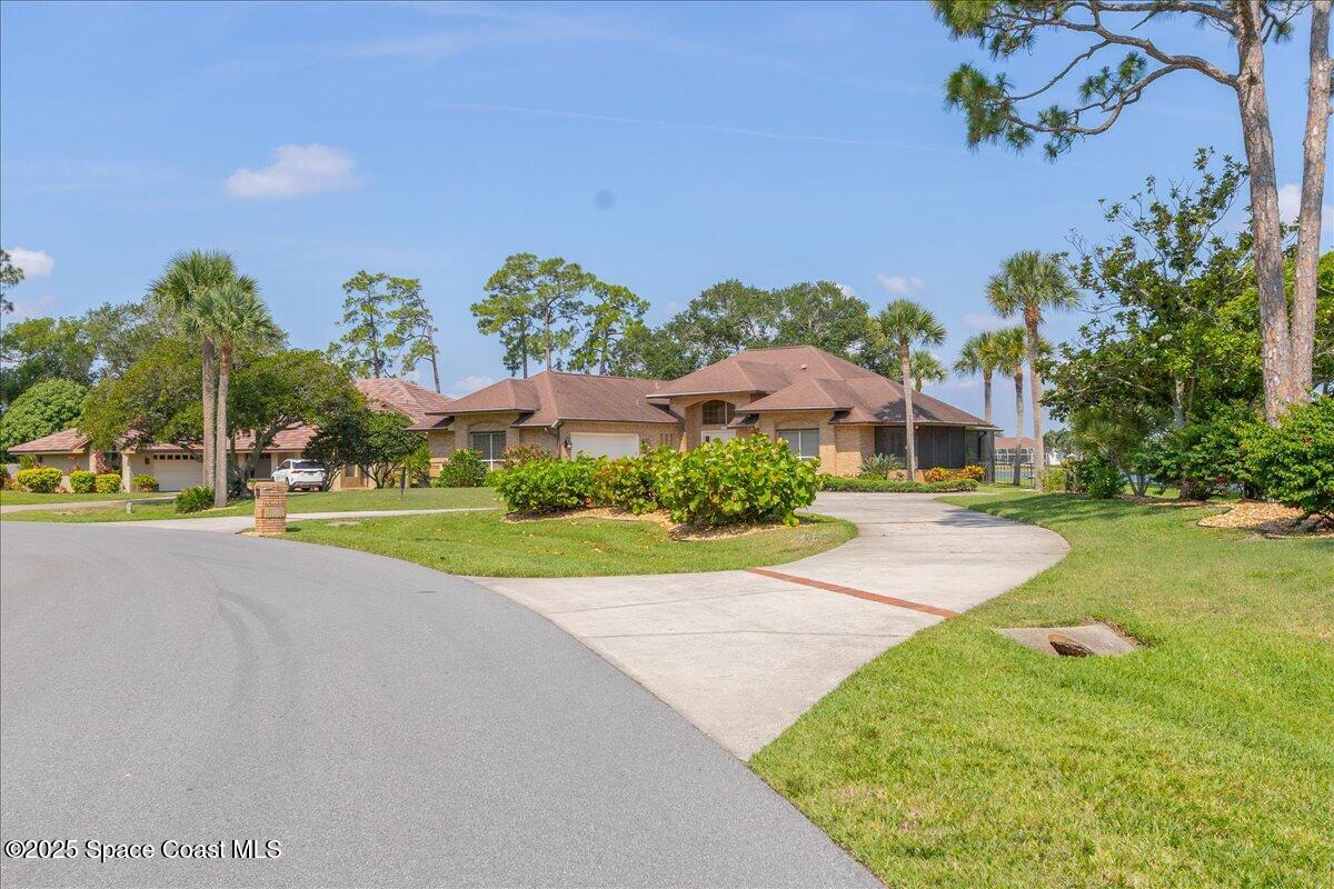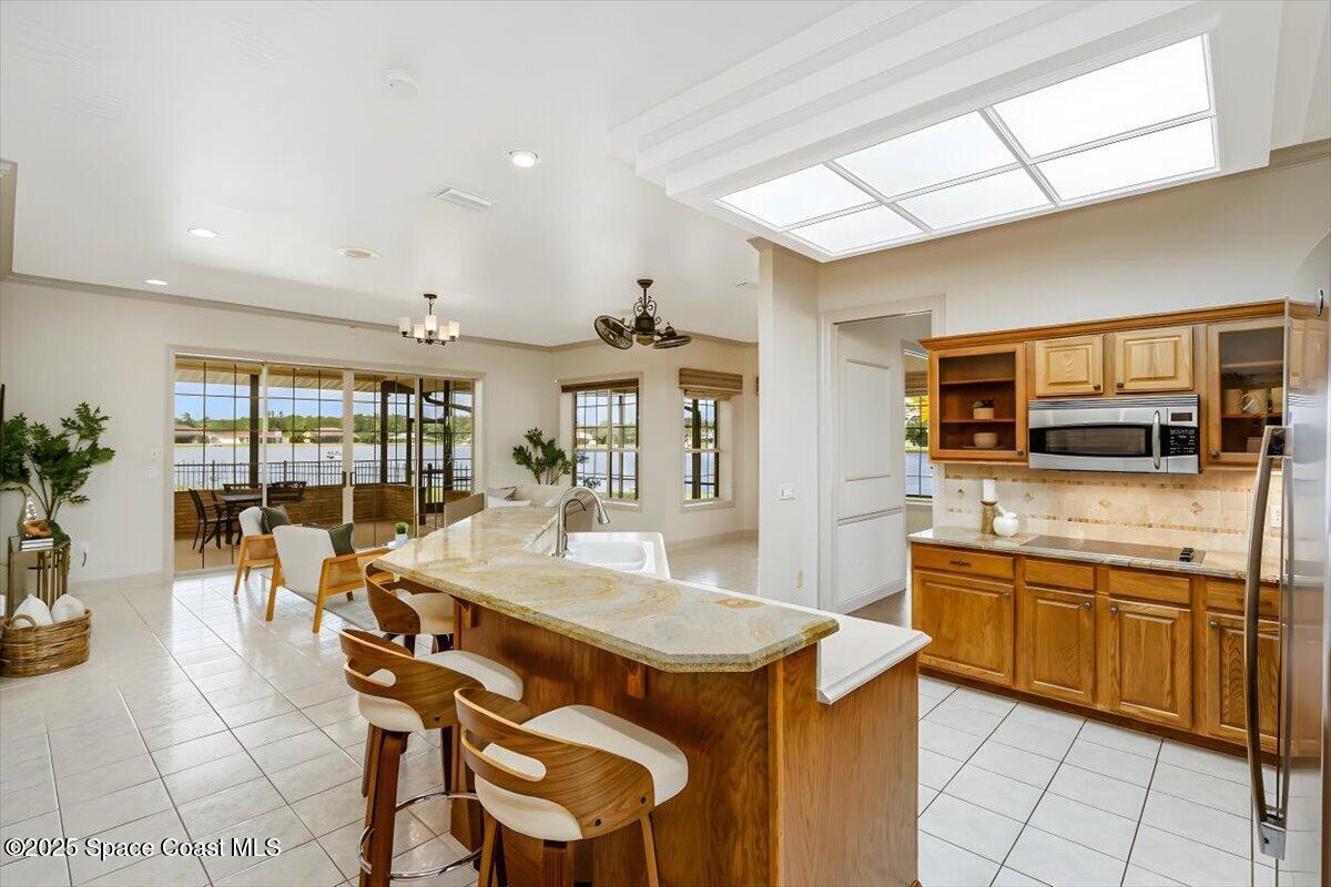 Exceptional custom-built pool home by East Coast Craftsman in prestigious Carriage Gate! This 3 bed, 2 full + 2 half bath residence offers 2,563 sq. ft. of living space on a .54-acre lakefront lot with panoramic views. Solid concrete block construction with a full brick exterior ensures timeless durability & curb appeal. The soaring 16' foyer & 10' ceilings with 8' doors create a grand, open feel. The gourmet kitchen features quartz & granite counters, new appliances, abundant storage & views of the pool & lake. The spacious primary suite includes double sliders to the patio, a walk-in closet, & a spa bath with dual vanities, walk-in shower, and garden tub. Executive finishes include crown molding, tiled floors, and a Jack-n-Jill bath for guest rooms. Outdoor living shines with a resurfaced pool (2016), summer kitchen, half pool bath, and an extended brick-paver patio. A circular drive & central vac complete this extraordinary property in an A-rated school district near shopping