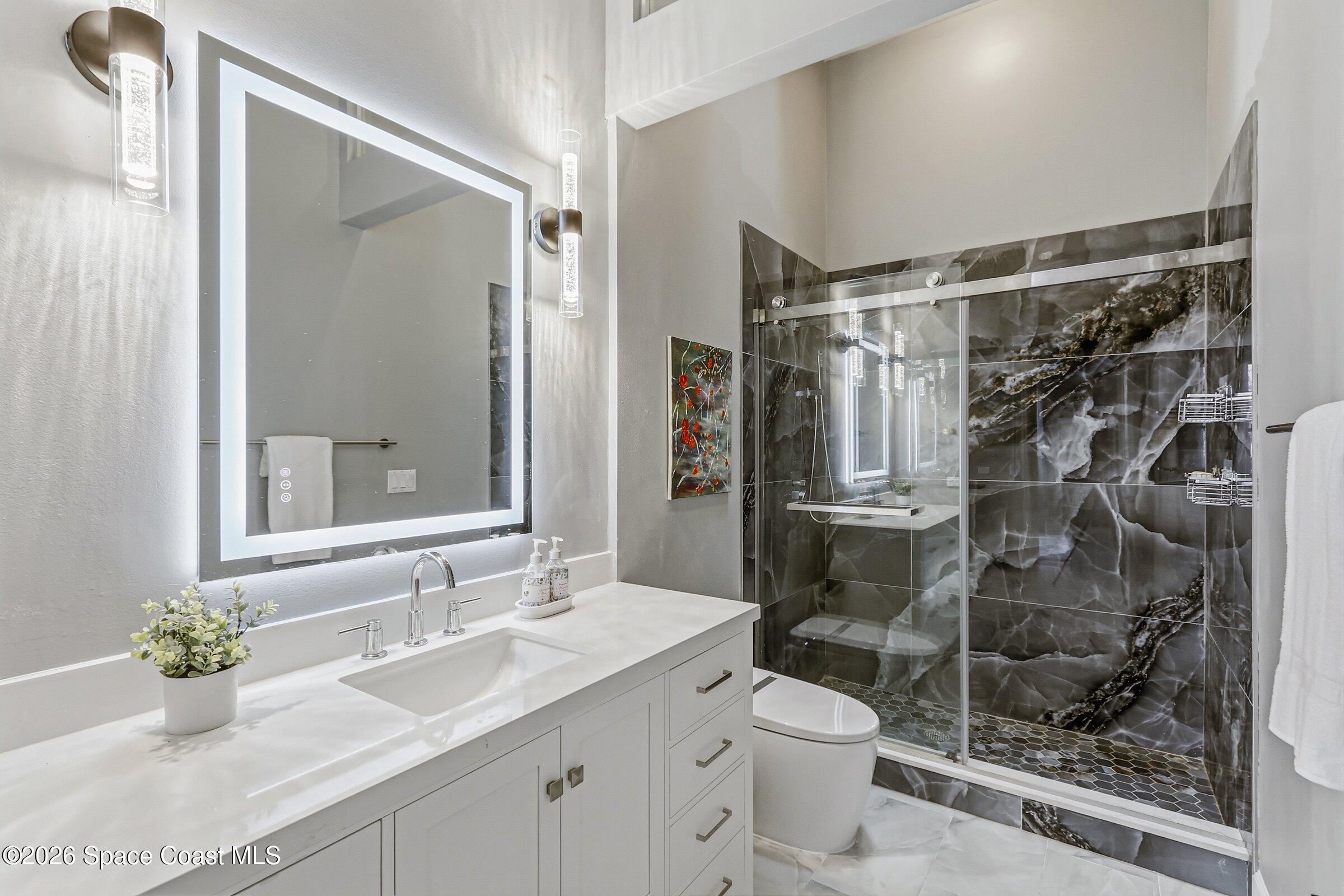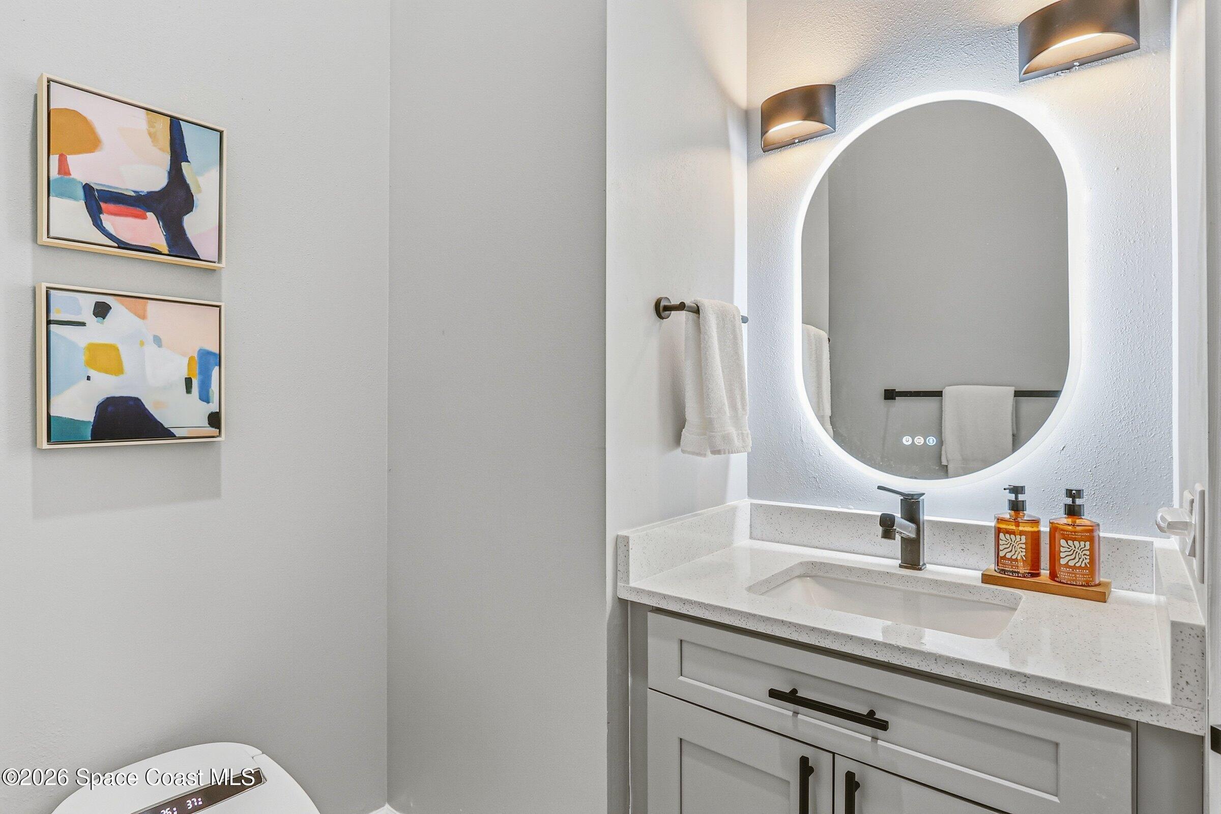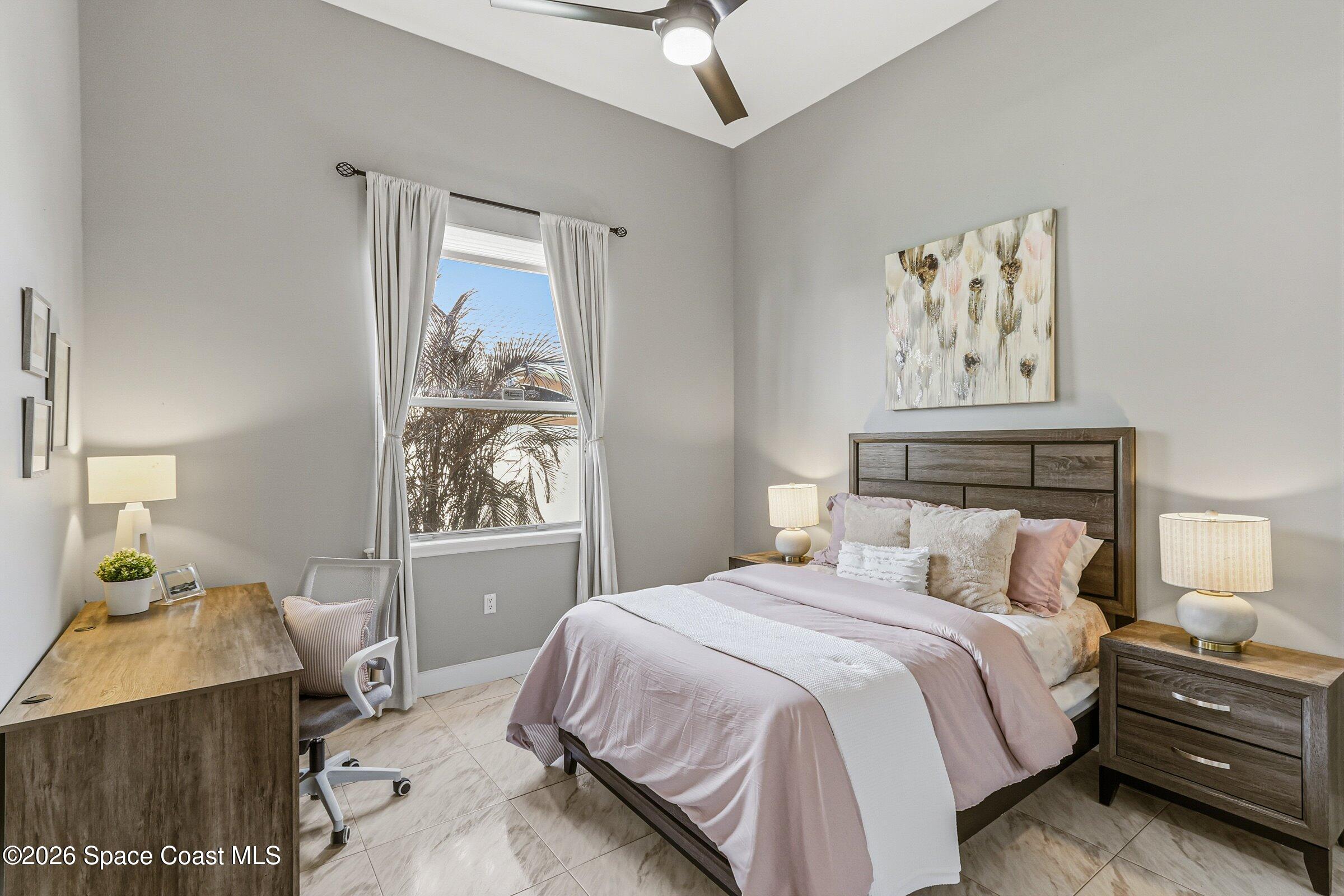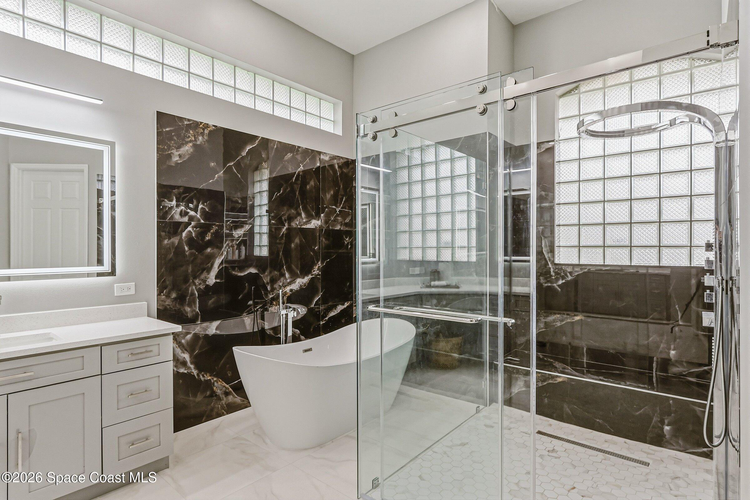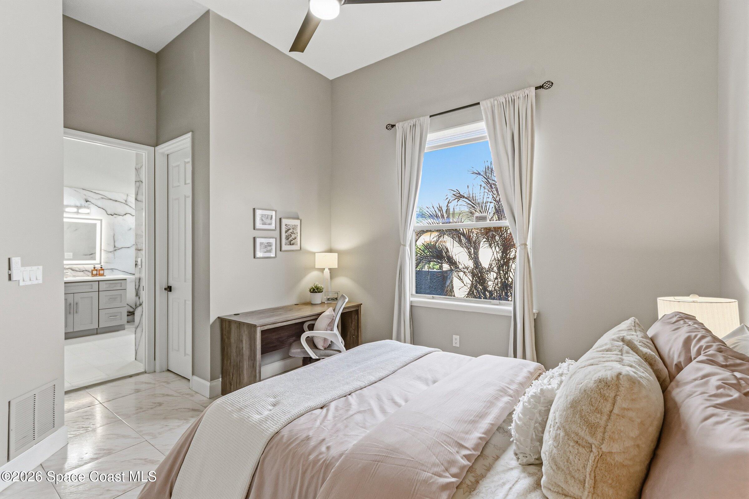 Discover an extraordinary lakefront estate in the Legends at Suntree. Offering 4,449sq ft of refined living space with sweeping views of Arnold Palmer Challenge Golf course.5 bedroom 3.5 bath residence blends grand scale with elegant design. Beginning with a dramatic 16' foyer and soaring 12-14' ceilings throughout accented by tray ceilings in the primary suite, living, family and dining rooms this home is designed for both sophisticated entertaining and everyday comfort. The home features a private library, media room and open living flow that captures stunning water and fairway vistas. The chef kitchen is beautifully appointed with quartz countertops a striking waterfall island and GE Cafe appliances. The luxurious primary suite offers a slipper tub, oversized walk-in shower and expansive his and hers closets. Outdoors a resort style pool and screened lanai overlook the tranquil lake and golf course scenery, completing this exceptional three-car garage estate.